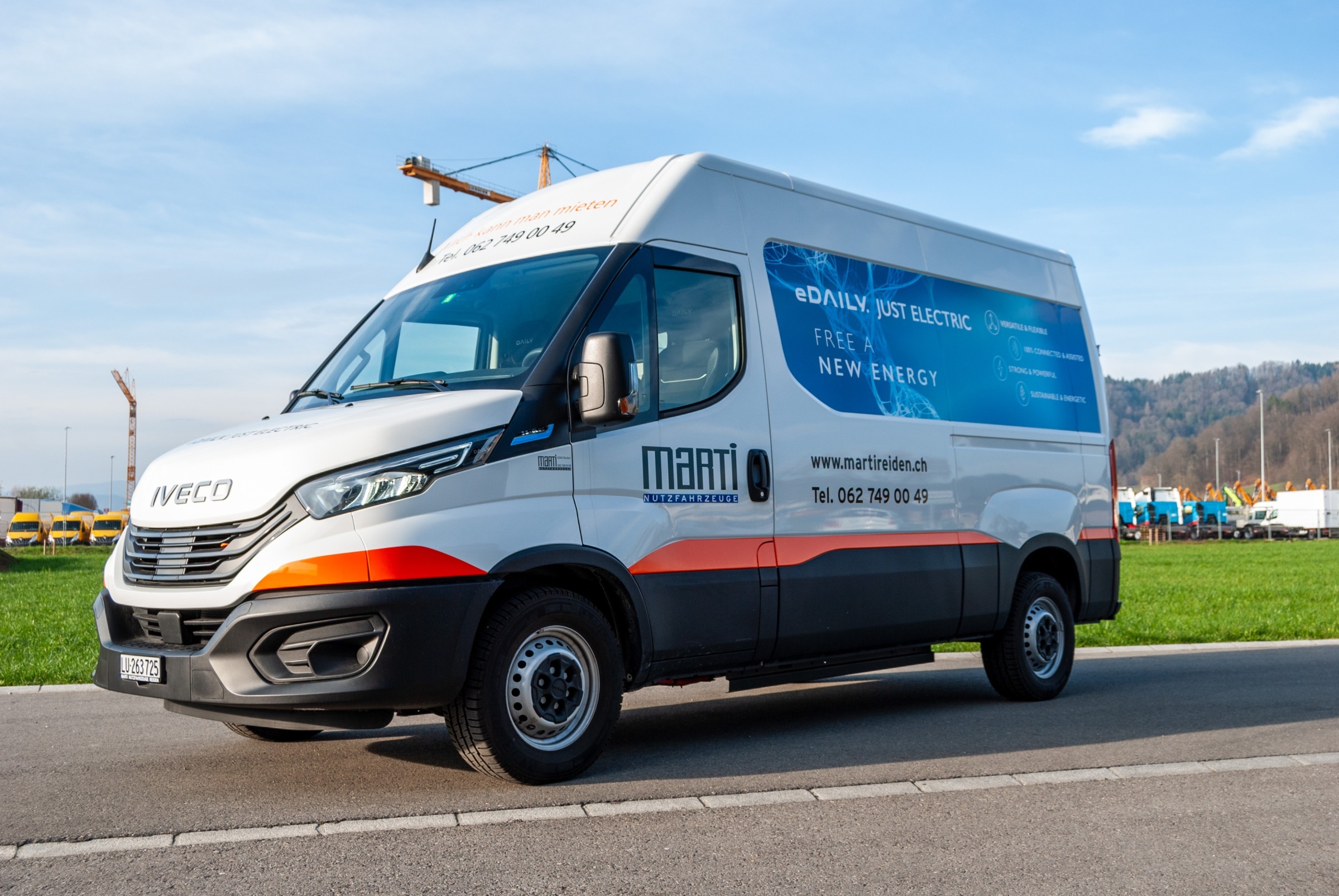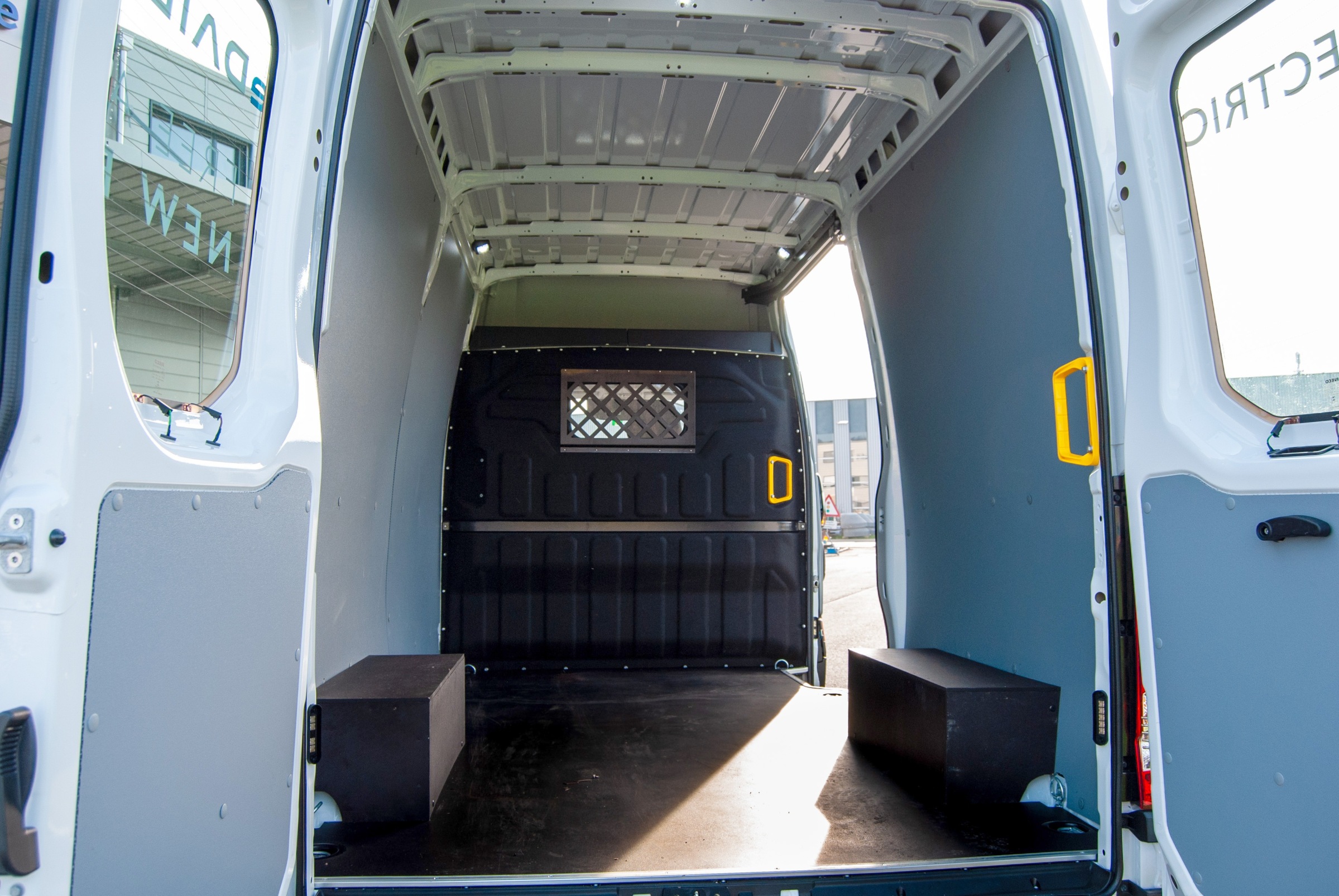 Kastenwagen mit Elektroantrieb; Radstand 3520 mm, Hochdach H2, 140 KW, Reichweite ca. 200 Kilometer.
